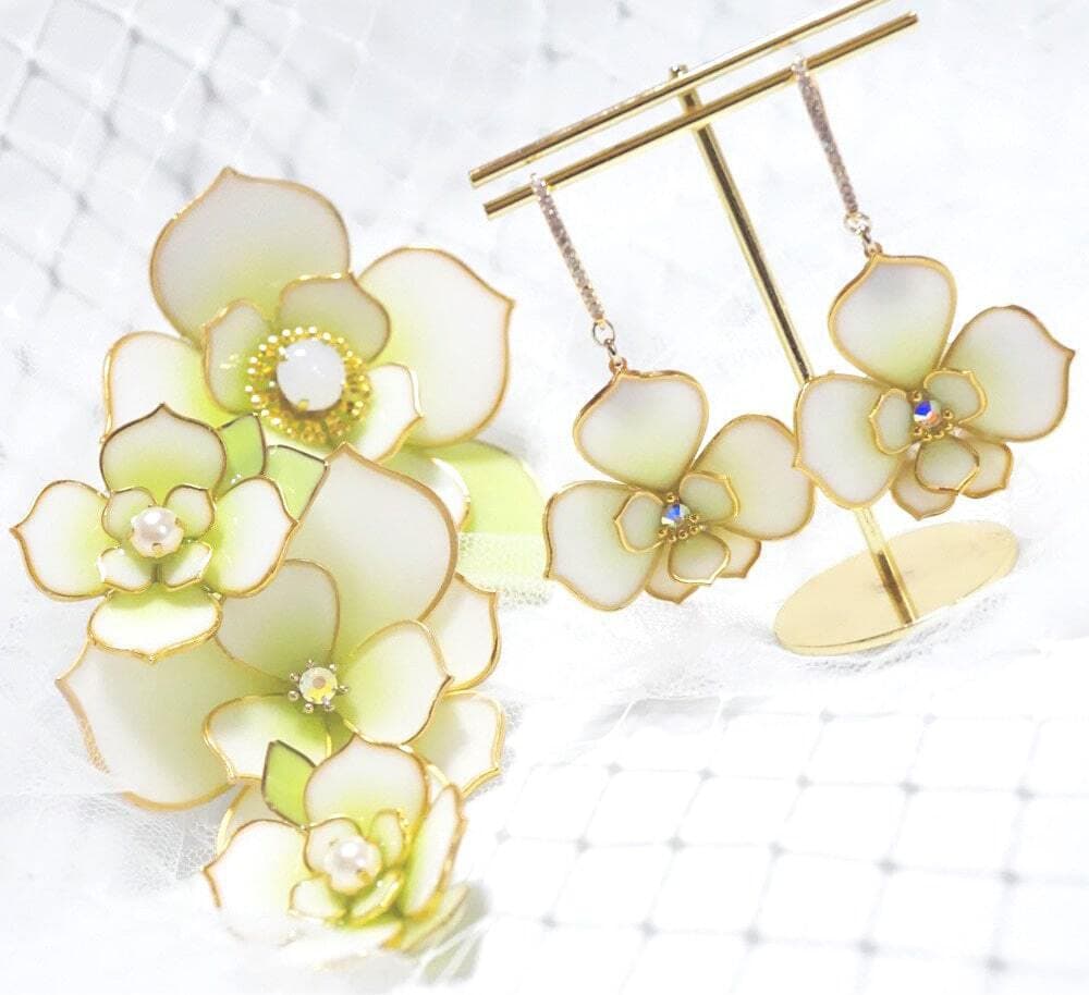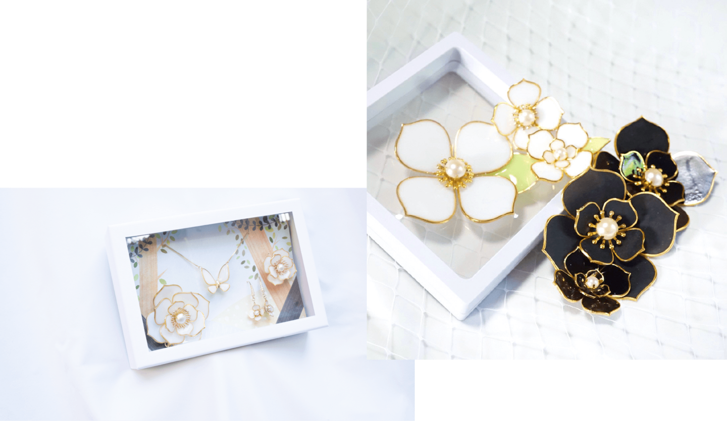 フレームdeレジンのパーツは町工場とゆびやがコラボして作った唯一無二の商品です。本物の金(K18)をメッキする事により、本物のジュエリーのような輝きを表現する事ができました。何処にでもありそうで、無いお花のパーツはゆびやが型紙をおこし、1から制作したものです。色々な型紙を作り、どの大きさが美しいか何度も試作を重ねて完成させたものです。現在、ゆびやが準備したお花のサイズは全8サイズ。小さな物はネイルのパーツにはじまり、大きな物はインテリアのシェードランプまで表現できるほどのサイズまで用意しています。表現の幅が広いのもこだわりのポイントです。あなたのアイデアで色々なサイズのパーツを組み合わせてみてください。